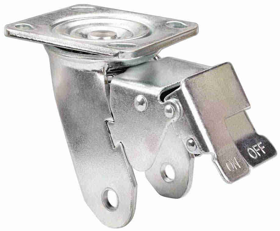 - Side Lock Brakes: A simple lever pushes a pad into the side of the wheel. The wheel can’t turn, but the caster can still swivel around.