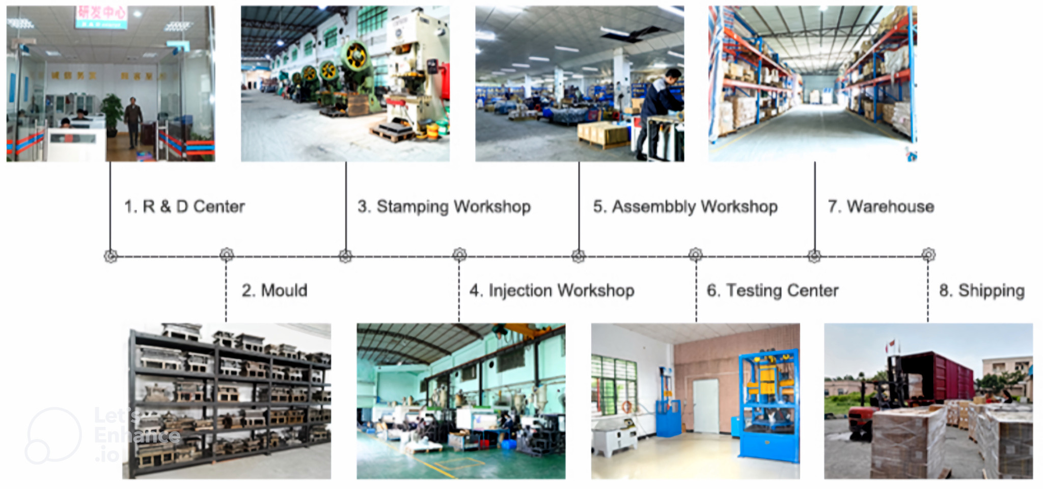 At Techin, our production process is streamlined for excellence from start to finish. It kicks off with research and development, followed by mold creation and component manufacturing in our Stamping and Injection Workshops. Assembly is next, with rigorous testing to ensure quality. Finally, products are stored in our warehouse until they’re shipped out. Each step is designed to deliver top-notch casters and wheels that meet your specific needs.