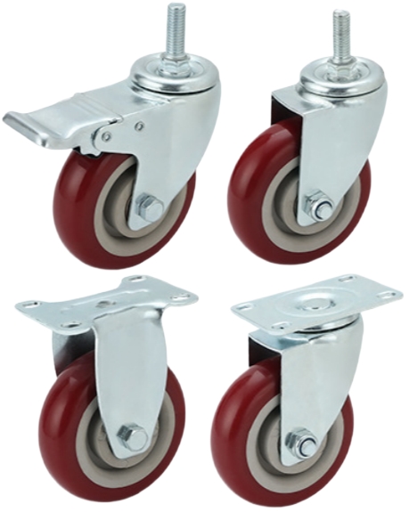Polyurethane (PU) casters combine the benefits of rubber and plastic. They are perfect for smooth rolling and provide better floor protection. PU casters are often used in environments where noise reduction and quiet movement are important. They are great for offices, homes, and areas with hardwood floors or tiles.