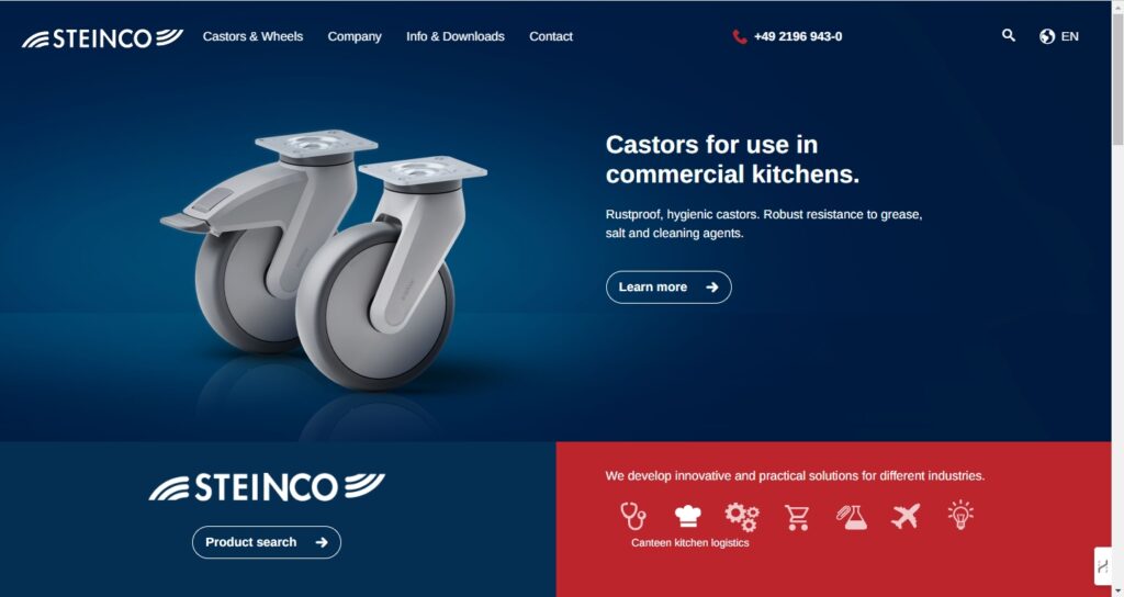 Founded in 1926 in Wermelskirchen, Germany, Steinco is known for its innovative casters and wheels, catering to various industries with high-quality standards. The company emphasizes innovation and quality, ensuring that its products meet the evolving needs of its customers.