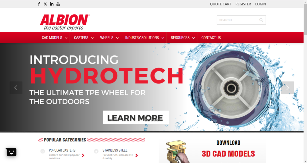 | Albion | Swivel and rigid casters, phenolic wheels | Manufacturing, material handling | Expanded online catalogs | Wide range of heavy-duty industrial casters | Albion |
