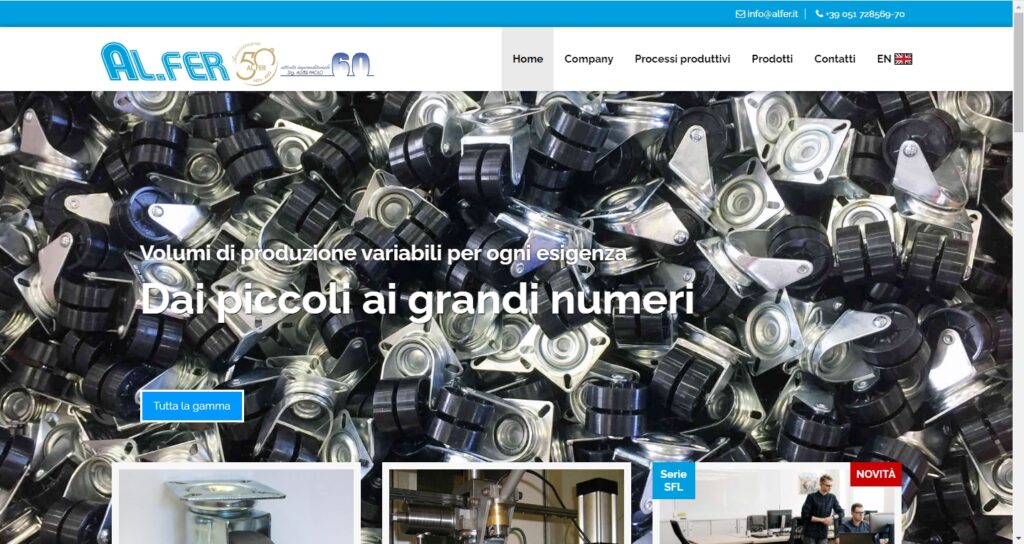 - Overview: AL.FER S.r.l. has been producing high-quality wheels and castors for over 50 years. Known for their stringent quality control procedures, AL.FER ensures that all their products comply with European standards, making them suitable for a wide range of applications.